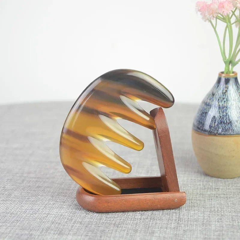 빗 Comb Natural White Buffalo Horn Scrapping Comb Five Tooth Massage Wide Teeth Combs Skin Care Acupoint Massage Board Tool